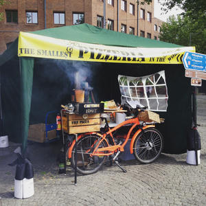 ちゃりんこが釜になってる斬新なケータリング系ピザ屋さん。